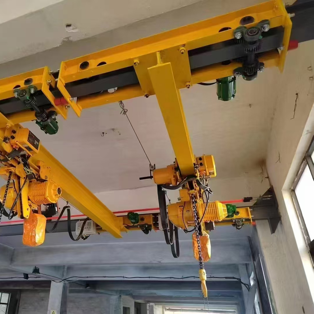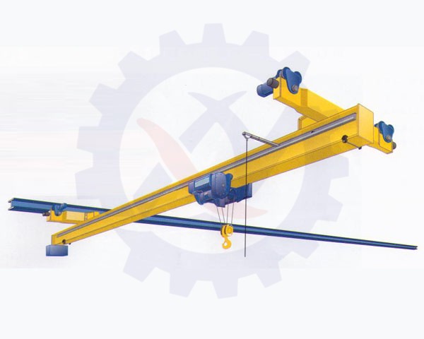 CD1、MD1型電動葫蘆配套使用,構(gòu)成有軌運行的單梁起重機。該懸掛起重機的運行軌道使用用工字鋼,主梁兩端懸掛于工字鋼下方前后運行,是小噸位起重設(shè)備。